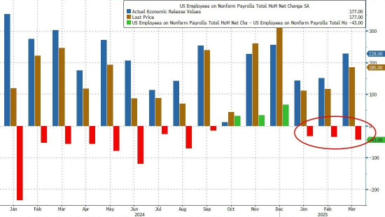 同样值得注意的是:效仿拜登的做法,3月的就业报告数据大幅向下修正,从22.8万个降至18.5万个,这已经是连续第三次对就业数据进行向下修正了。